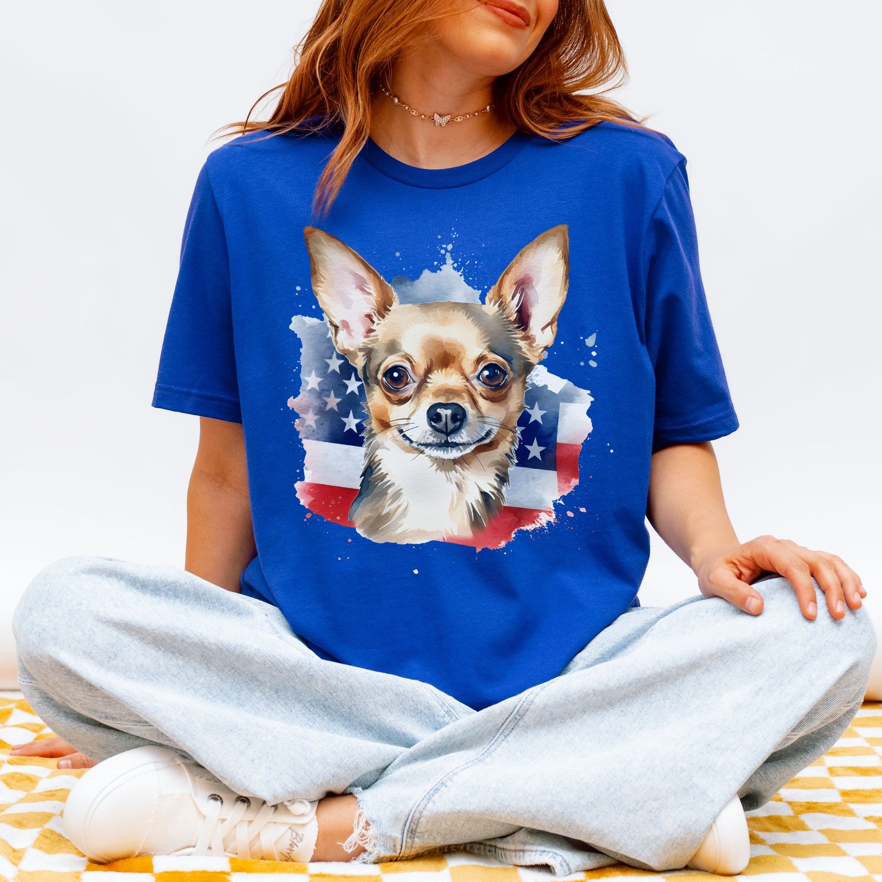 Patriotic Smooth Coat Chihuahua Dog T-Shirt | 4th of July Flag Tee