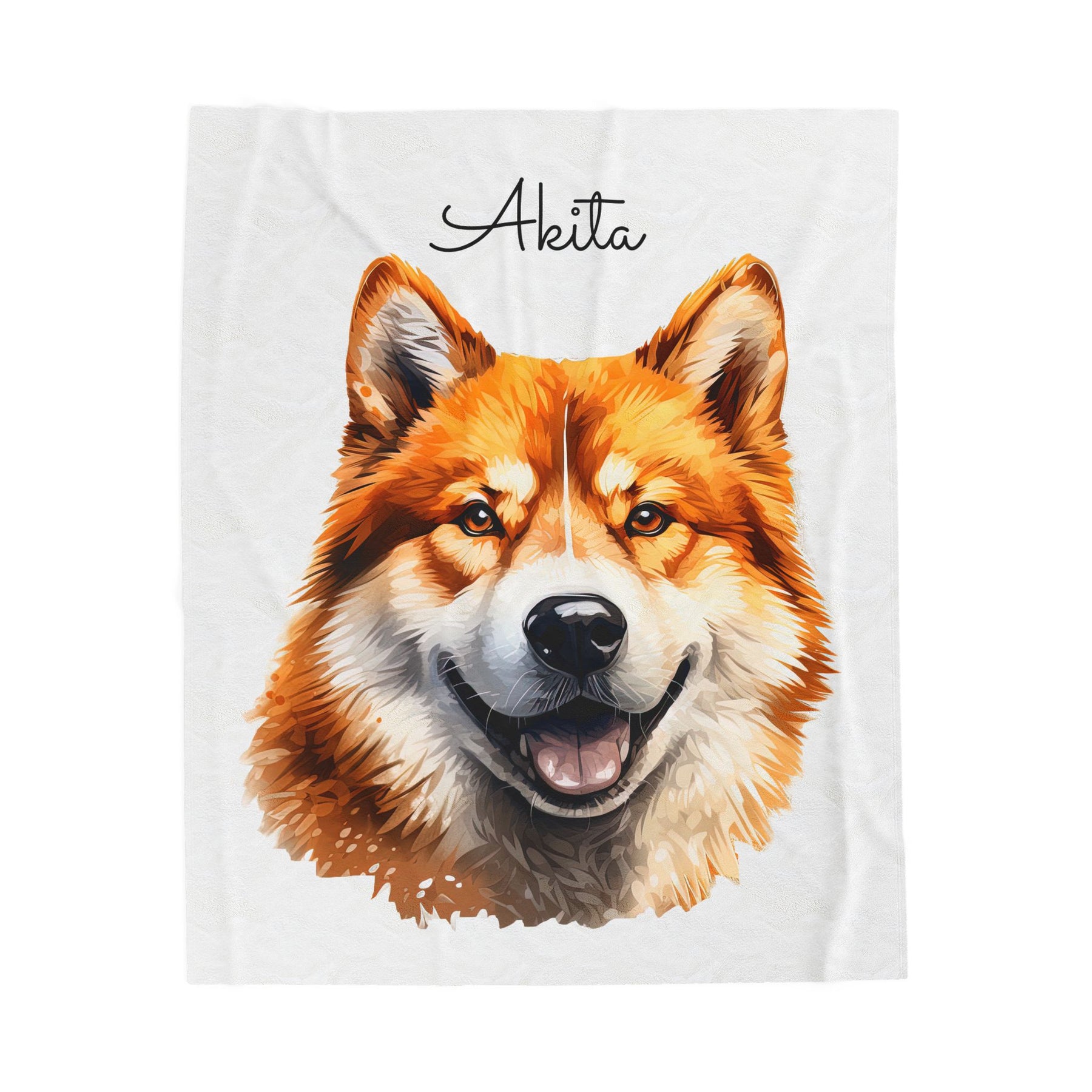Wrap yourself in the comfort of this velveteen hug, showcasing the adorable face of a Red fawn Akita against a crisp white backdrop. This plush blanket is softer than a cloud and perfect for turning any home into a warm and cozy haven.