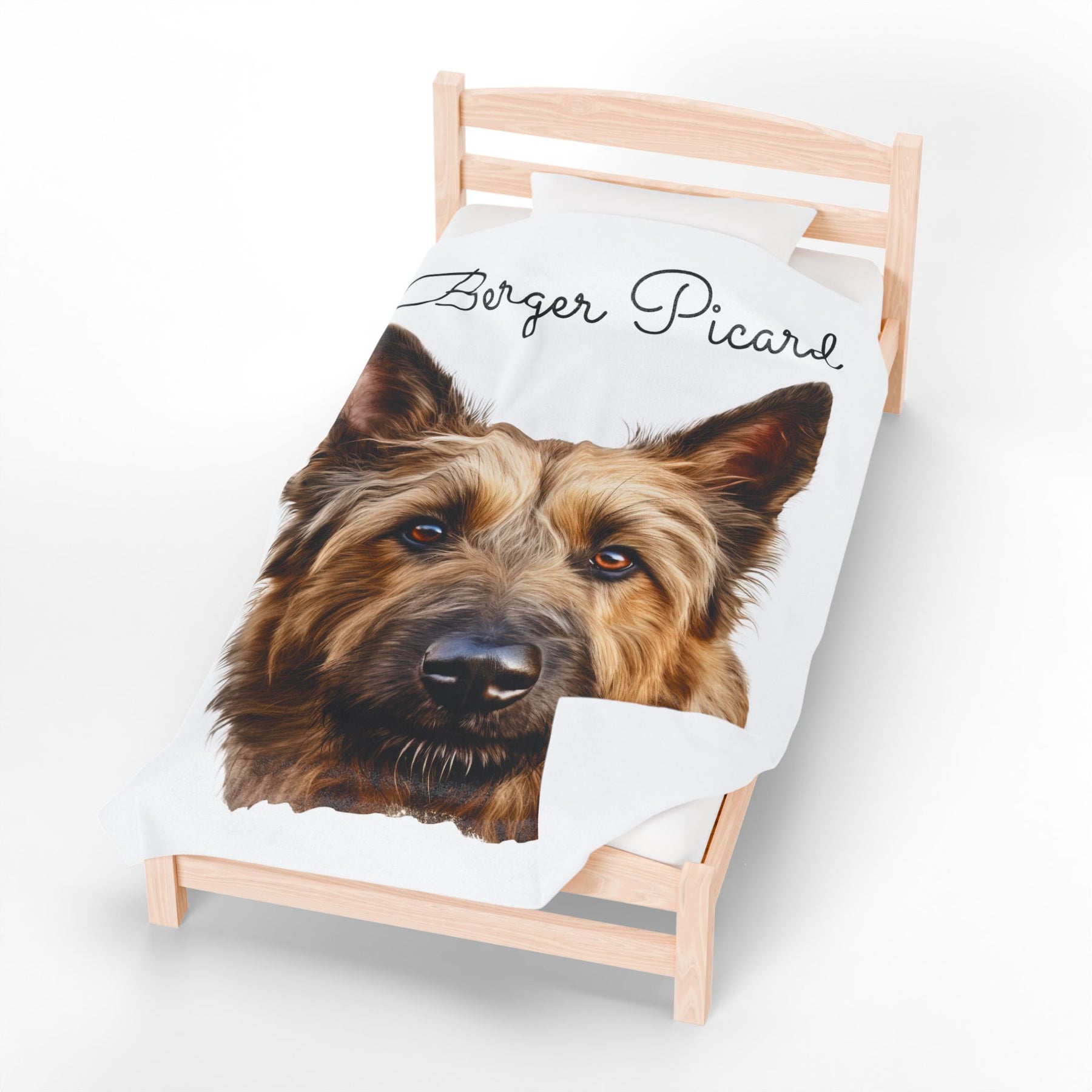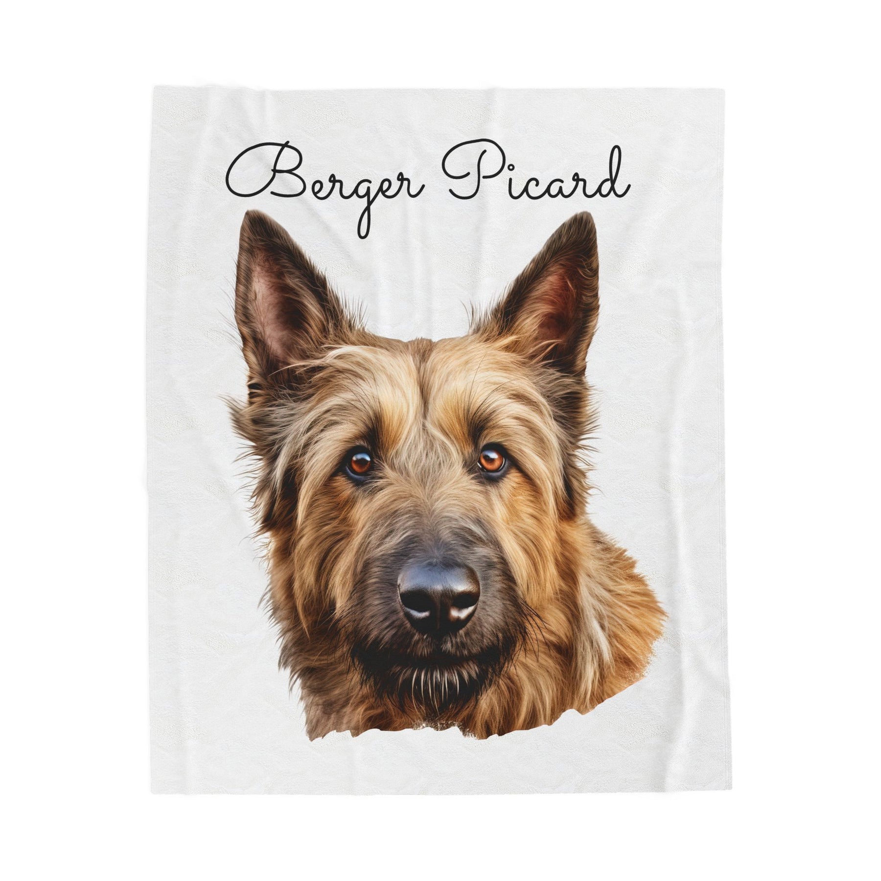 Berger Picard Velveteen Plush Blanket with White Background - 3 Sizes available cozy throw dog lover - Pet mom gift