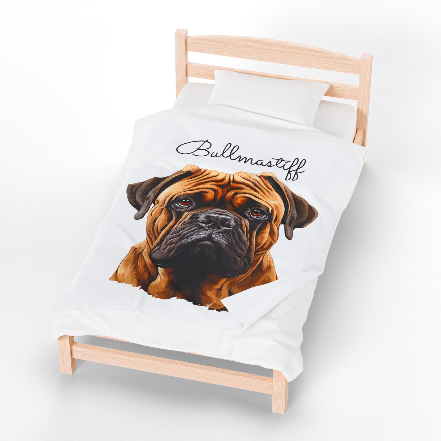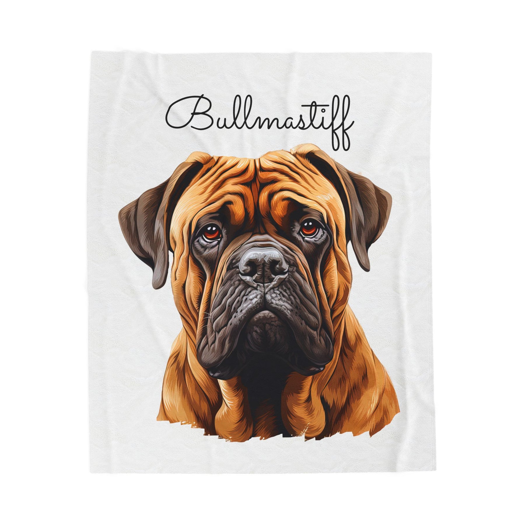 Wrap yourself in the comfort of this velveteen hug, showcasing the adorable face of a Bullmastiff against a crisp white backdrop. This plush blanket is softer than a cloud and perfect for turning any home into a warm and cozy haven.
