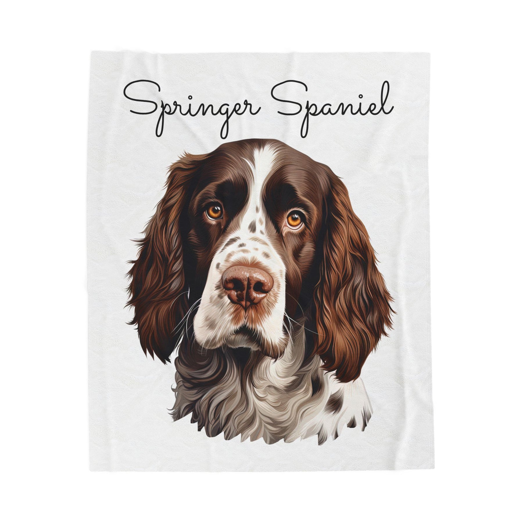 Wrap yourself in the comfort of this velveteen hug, showcasing the adorable face of a Springer Spaniel against a crisp white backdrop. This plush blanket is softer than a cloud and perfect for turning any home into a warm and cozy haven.